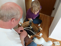 The other end of the dryer hose enters a wooden box that Uncle Art and Cousin Mark constructed. The box is hidden in a closet around the corner from the fireplace.