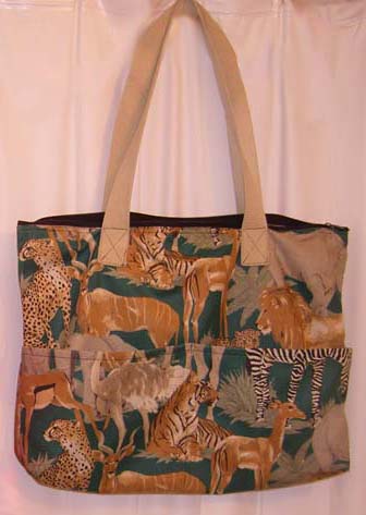 My solution is to use a large zippered bag with exterior pockets. It has a jungle motif that fits the Savage Sisters brand. My purse and netbook fit inside, along with a water bottle (empty while going through security, of course), my liquids zip-top bag, a few snacks, and a book to read.