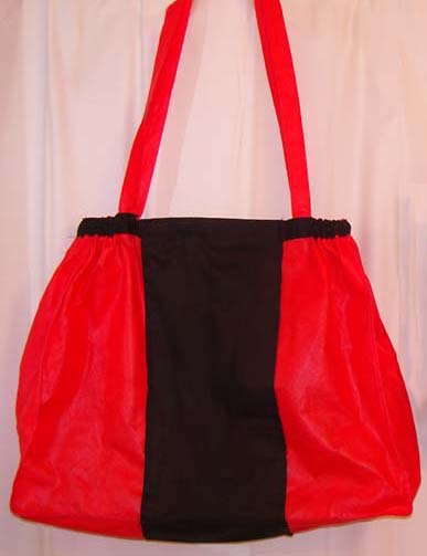 - I started with a large red custom-imprinted shopping bag made of a nonwoven synthetic fabric. Since I preferred not to advertise the shopping bag’s pedigree during the entire trip, I sewed a remnant of black cotton around the bag vertically to cover the logo and reinforce the bag at the same time.