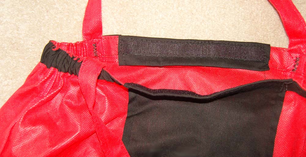 - Next I sewed a long strip of loop tape at the top of the opening between the handles and a matching strip of hook tape on the opposite side to ensure a secure closing.